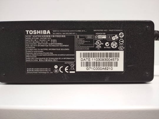 Konektor nabíjačky: 6.3 x 3.0 mm Maximálny výkon: 75W Charger input: 100-240V 1,3A 50-60 Hz Výkon a prúd: 15V / 5,0A Kompatibilita: Toshiba regular